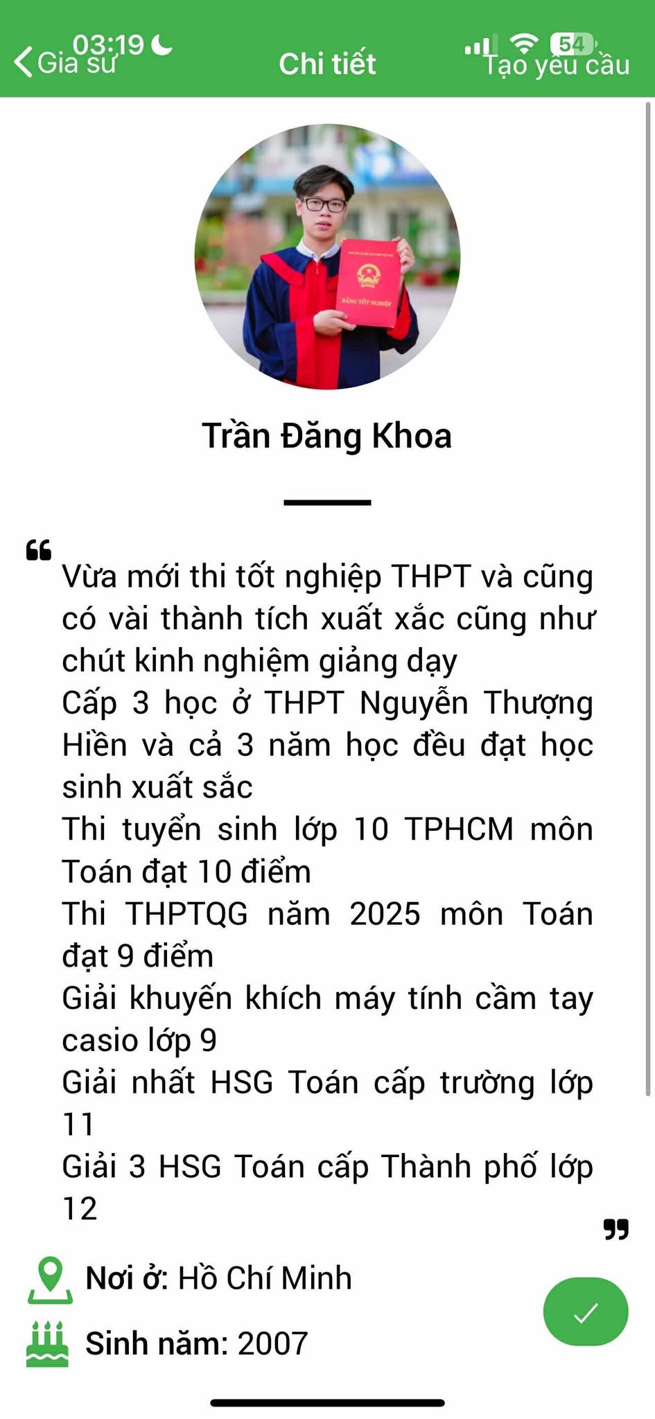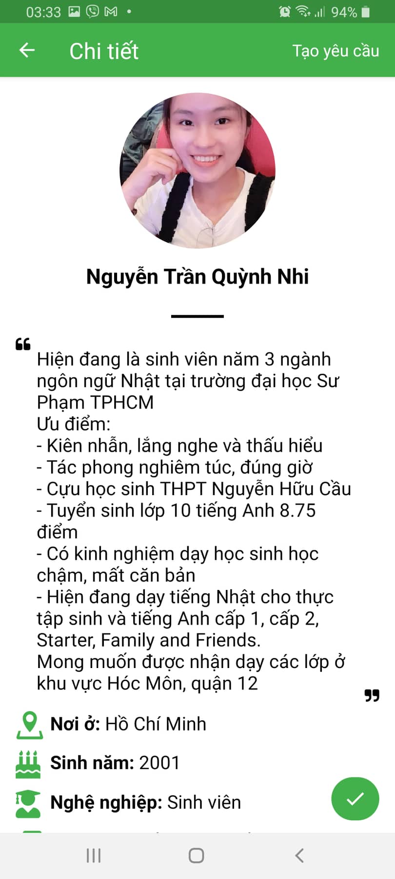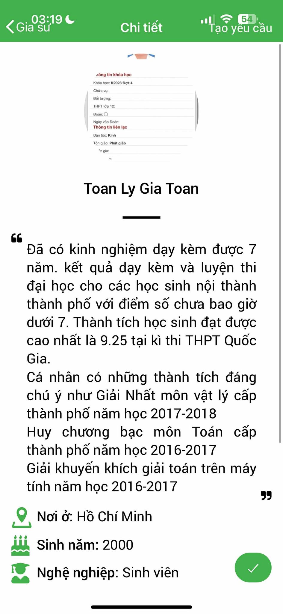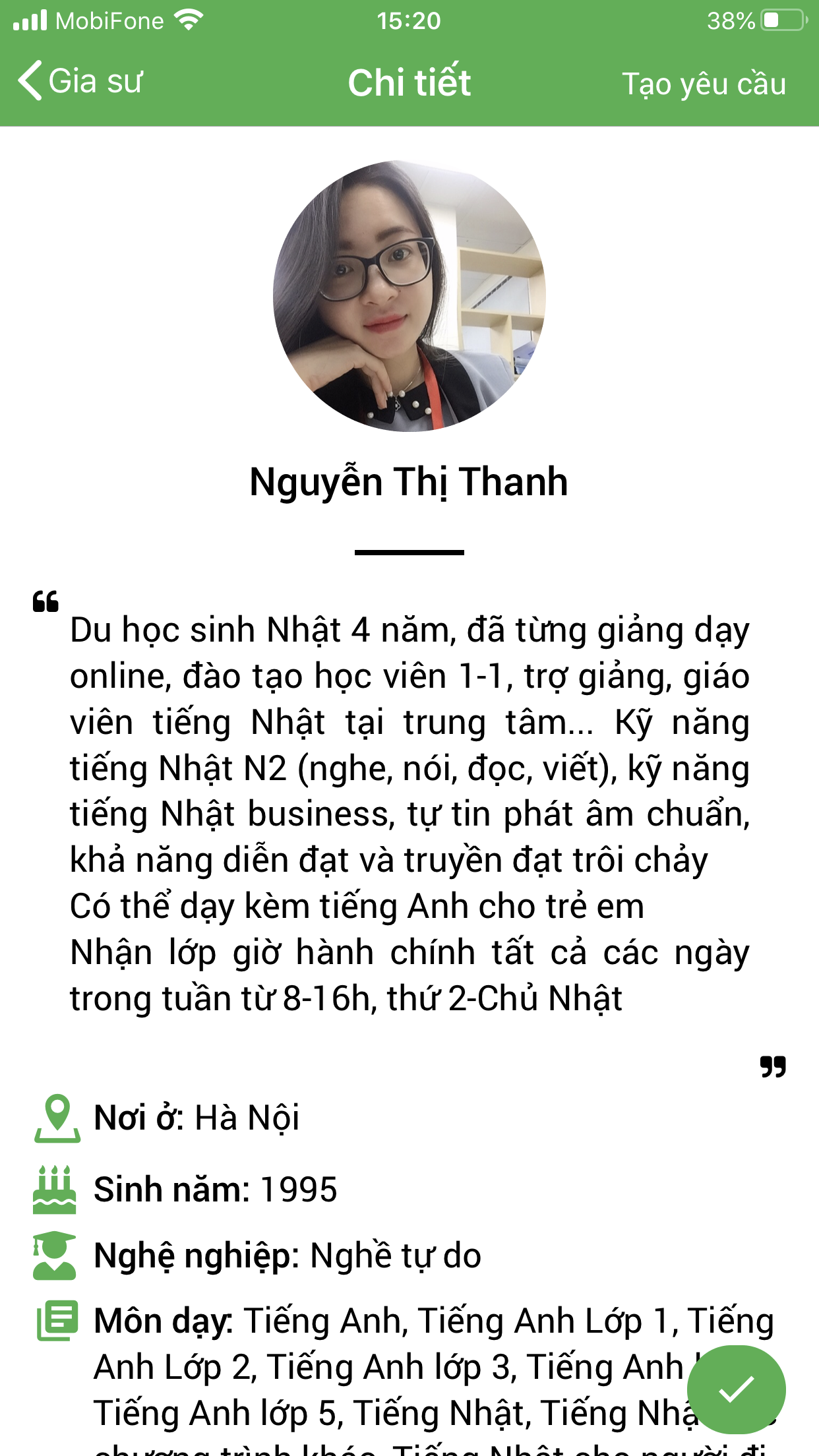 – Thông tin gia sư bảo mật, được xác nhận với PHHS trước