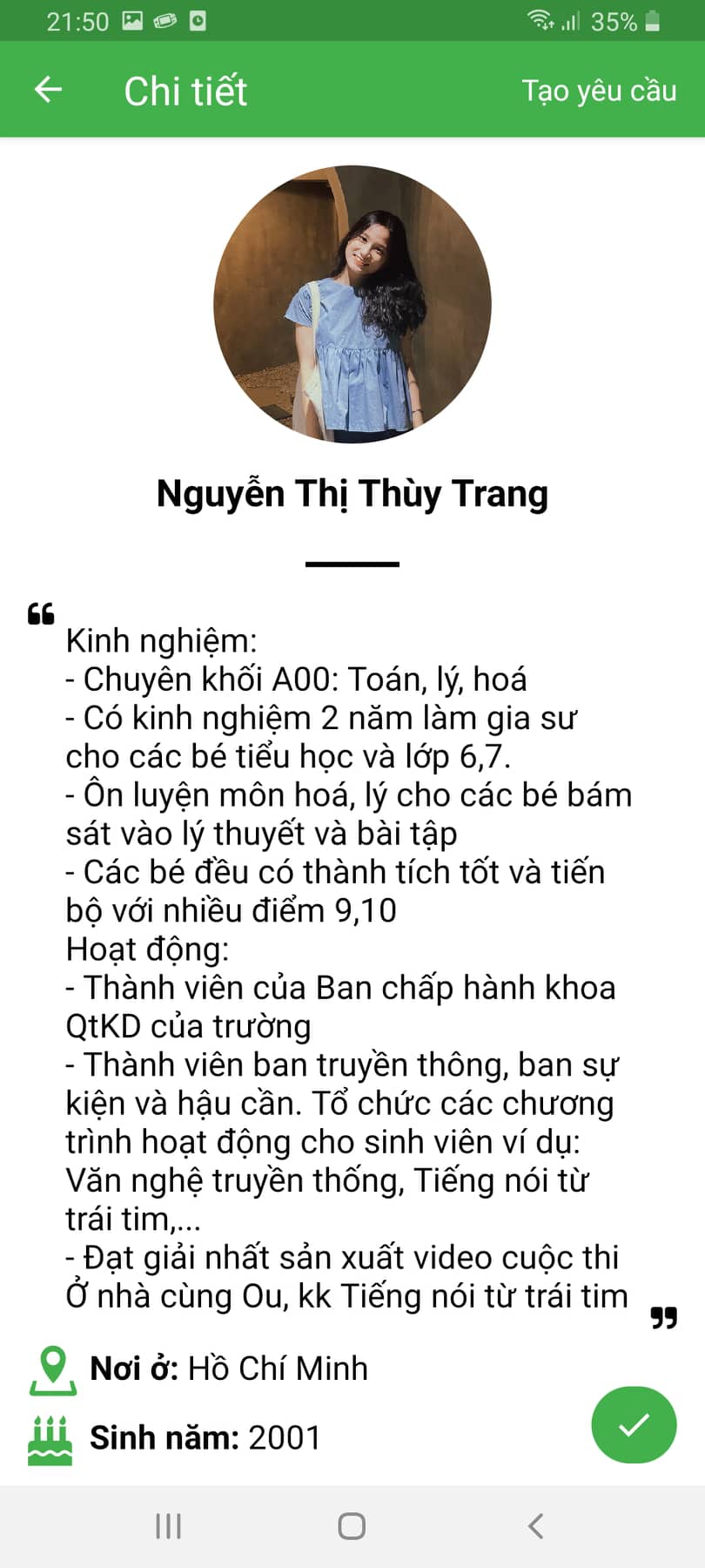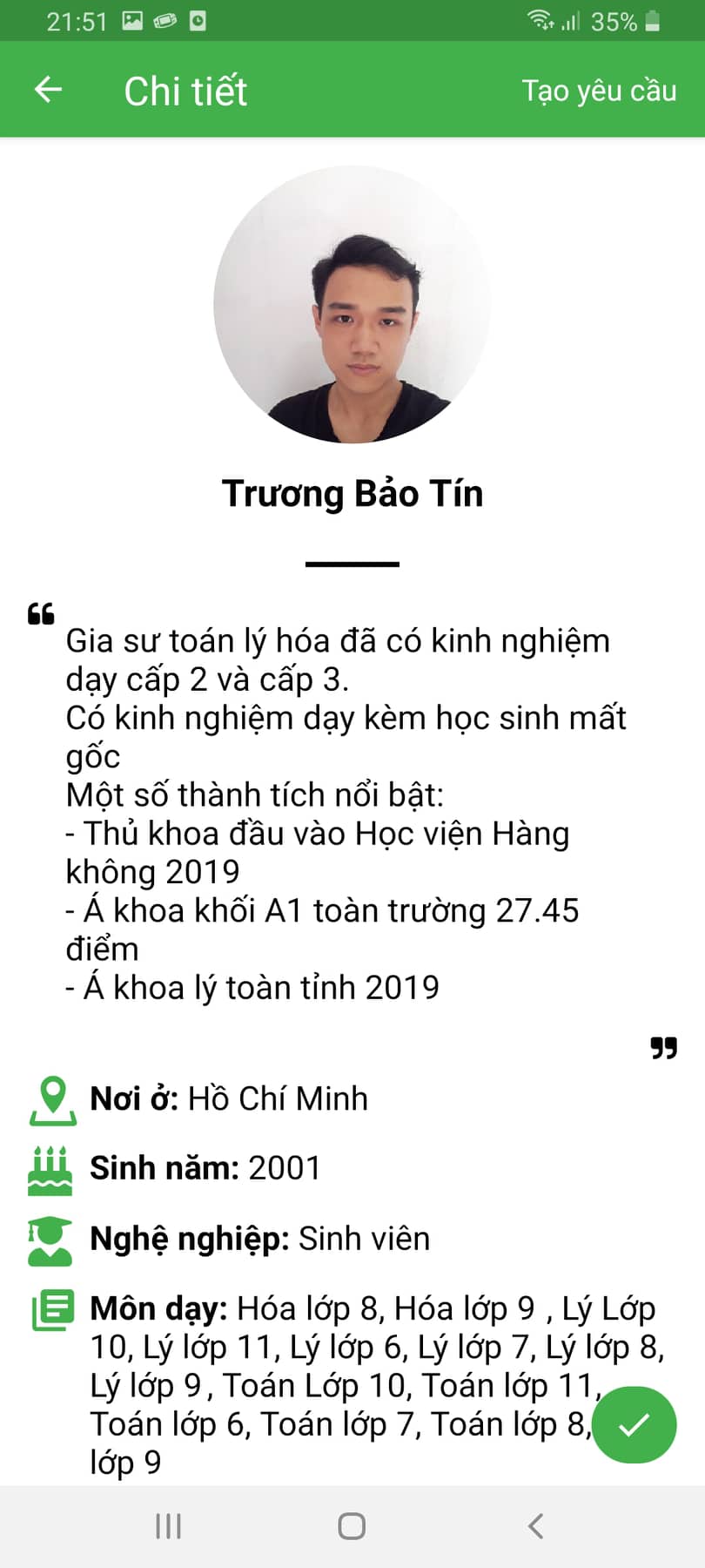 – Kiểm duyệt tài khoản gia sư phù hợp với lớp